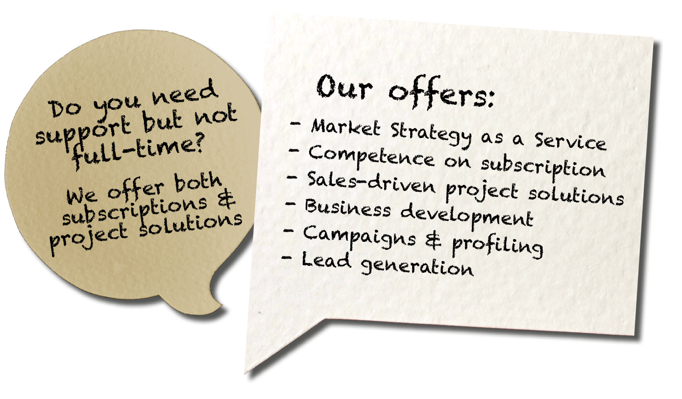 We understand the challenges and know how to overcome them. With 20+ years of experience in leading roles in business development and marketing in varied industries, we tailor the support that suits you. We combine strategic thinking with operational execution and always deliver very high quality. → Get to know us.